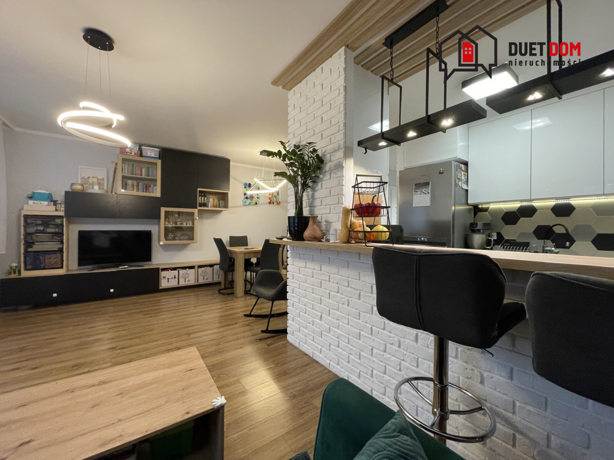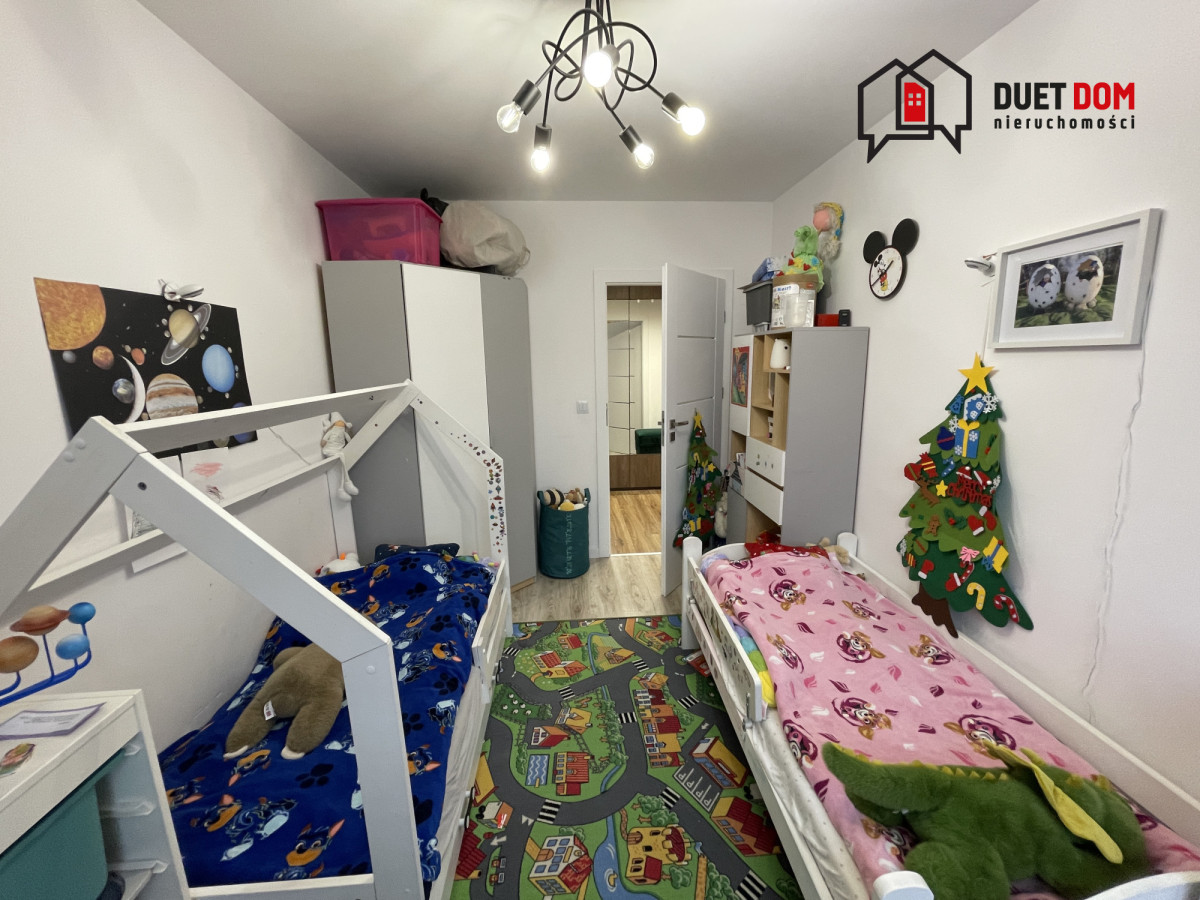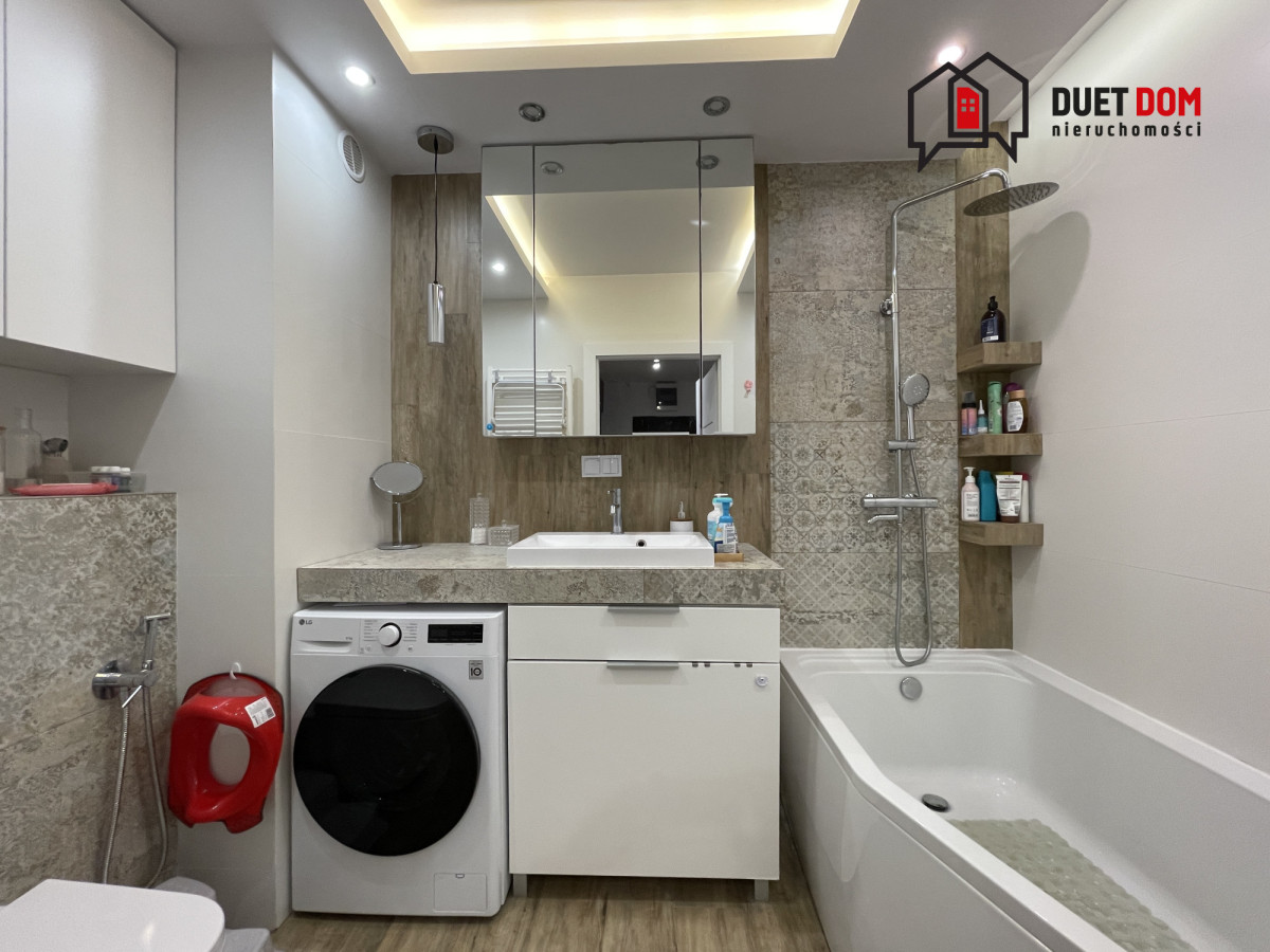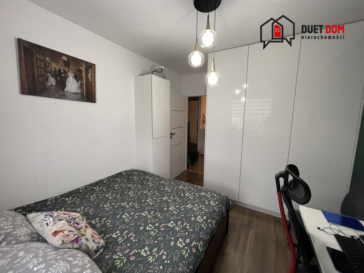 Zabudowa meblowa wykonana przez stolarza na wymiar, w przedpokoju oraz sypialni 2 duże szafy w zabudowie. W salonie zamontowana klimatyzacja.